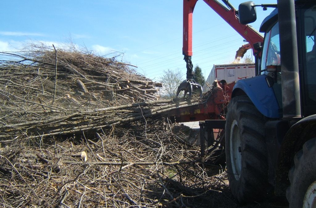 Broyage des arbres le long des berges de l’Isère Les arbres abattus sont transformés en plaquettes bois . avril 2015